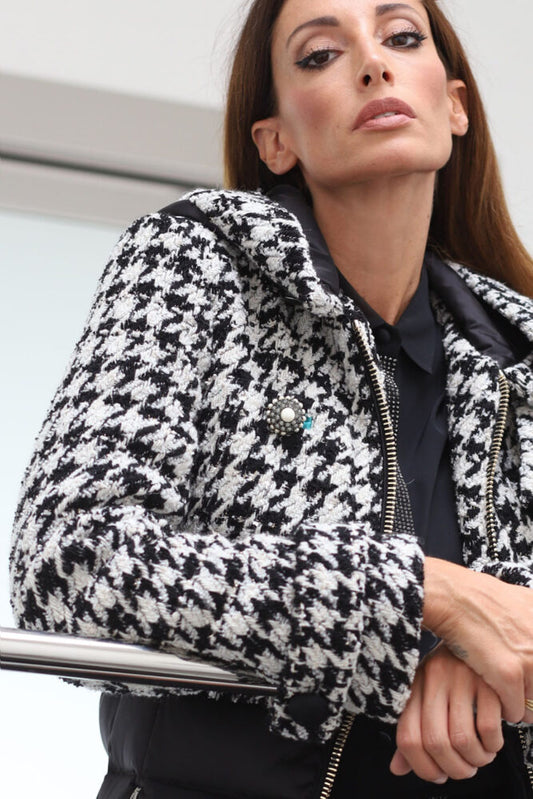 Cardigan zip jaquard foglie tortora e fango Tricot Chic
