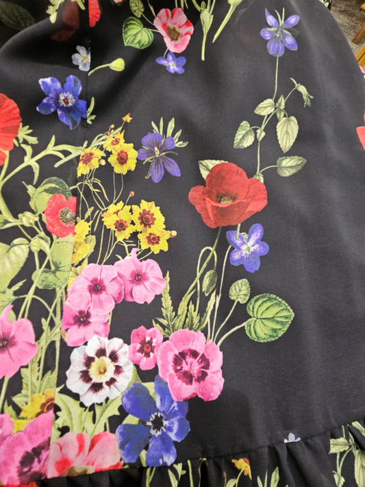 Giacca corta di raso maculata e fiori bianchi Mattiolo