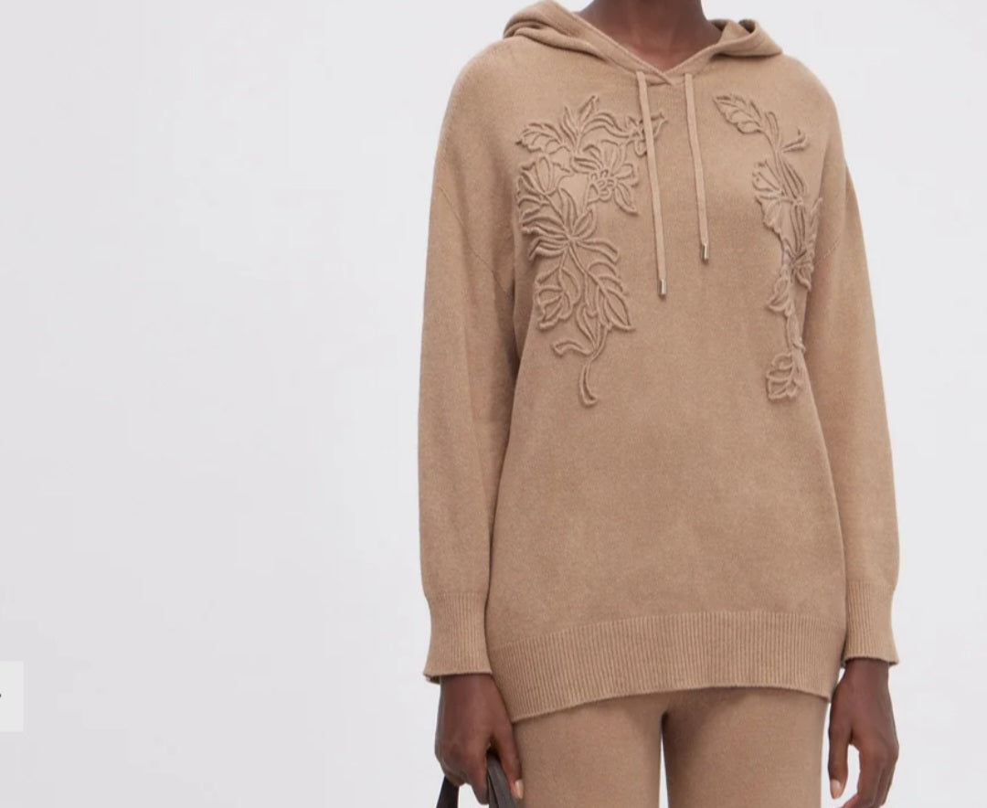 Maglia beige ricamo lana con cappuccio Ermanno Firenze by Scervino
