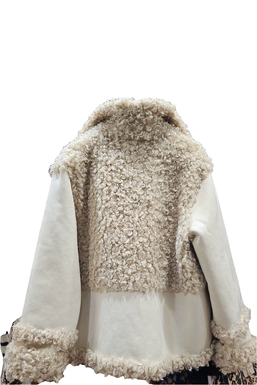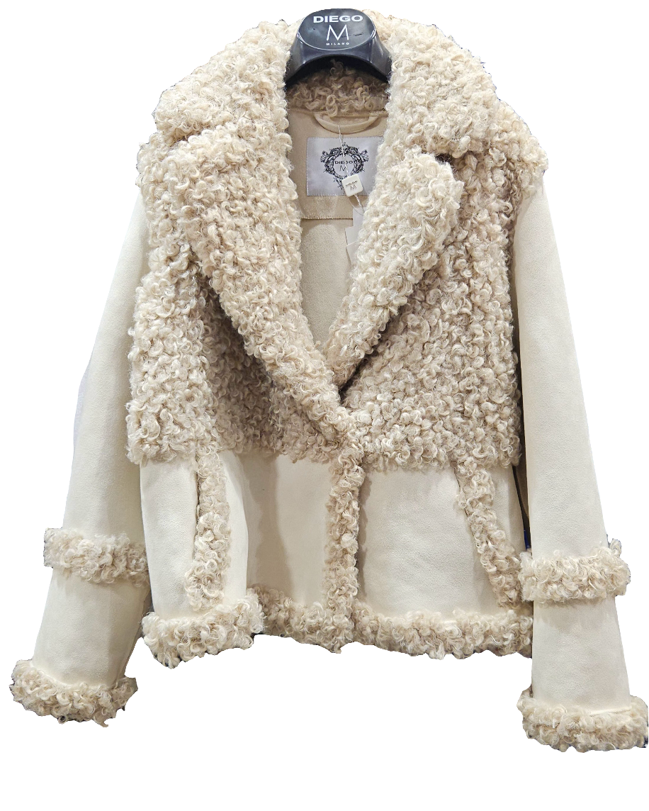 Montone ecologico caldo doppio petto stretto chiusura tre bottoni a pressione due tasche ai lati a filo collo blazer maniche lunghe